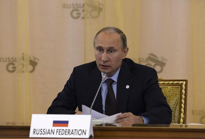 Russian President Vladimir Putin attends the second working session of the G20 Summit near St. Petersburg on September 6, 2013. © 2013 Reuters